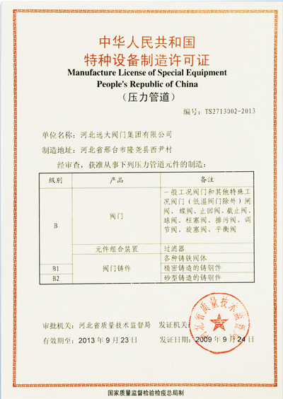 特种设备制造许可证